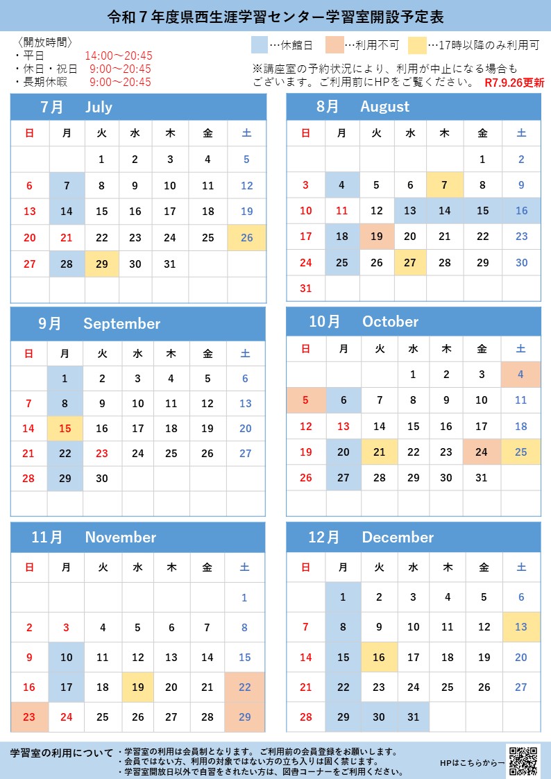 ・学習室開放日以外で自習をされたい方は、図書コーナーをご利用ください。