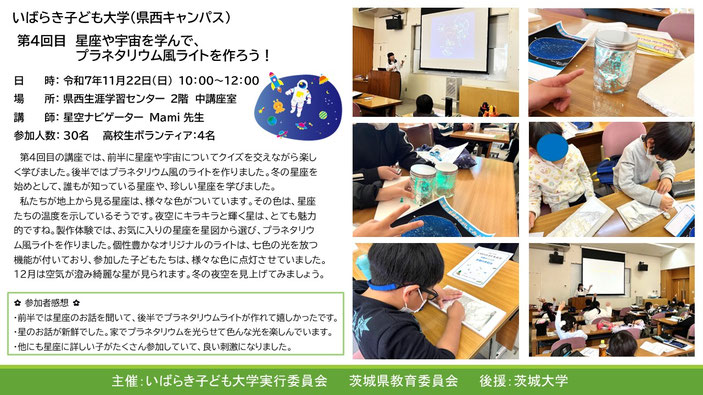いばらき子ども大学④【星座や宇宙を学んで、プラネタリウム風ライトを作ろう!】